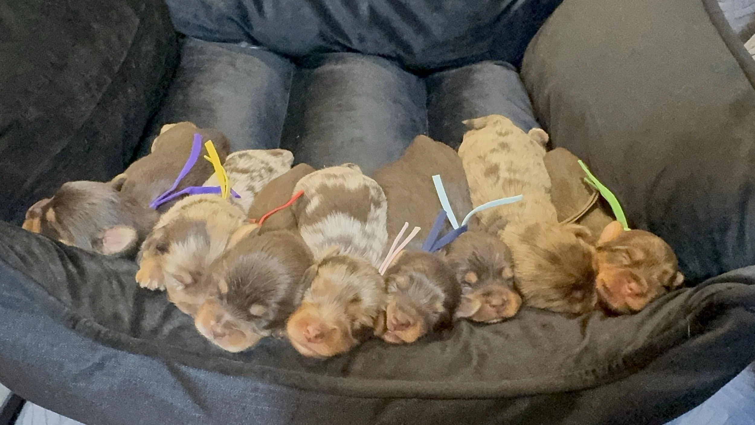 Frankie & Sir Tedrick welcomed eight beautiful AKC Chocolate Yorkies!