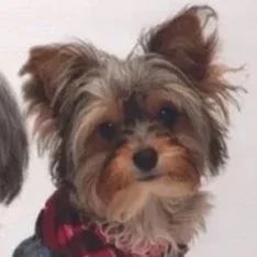 Miss Frankie Jean is a character full of energy and love! She loves to do zoomies and roll in leaves. Frankie loves treat time and knows how to sit pretty. Frankie is a Merle Yorkie with a beautiful light tan coat. She has a partial blue eye and the sweetest face and loves to show her teeth and smile when she is excited!